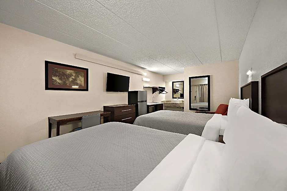 Guests can make meals in the kitchen that has a refrigerator, a microwave and a tea and coffee maker. The quadruple room is furnished with a desk and a seating area. The unit has 2 beds.